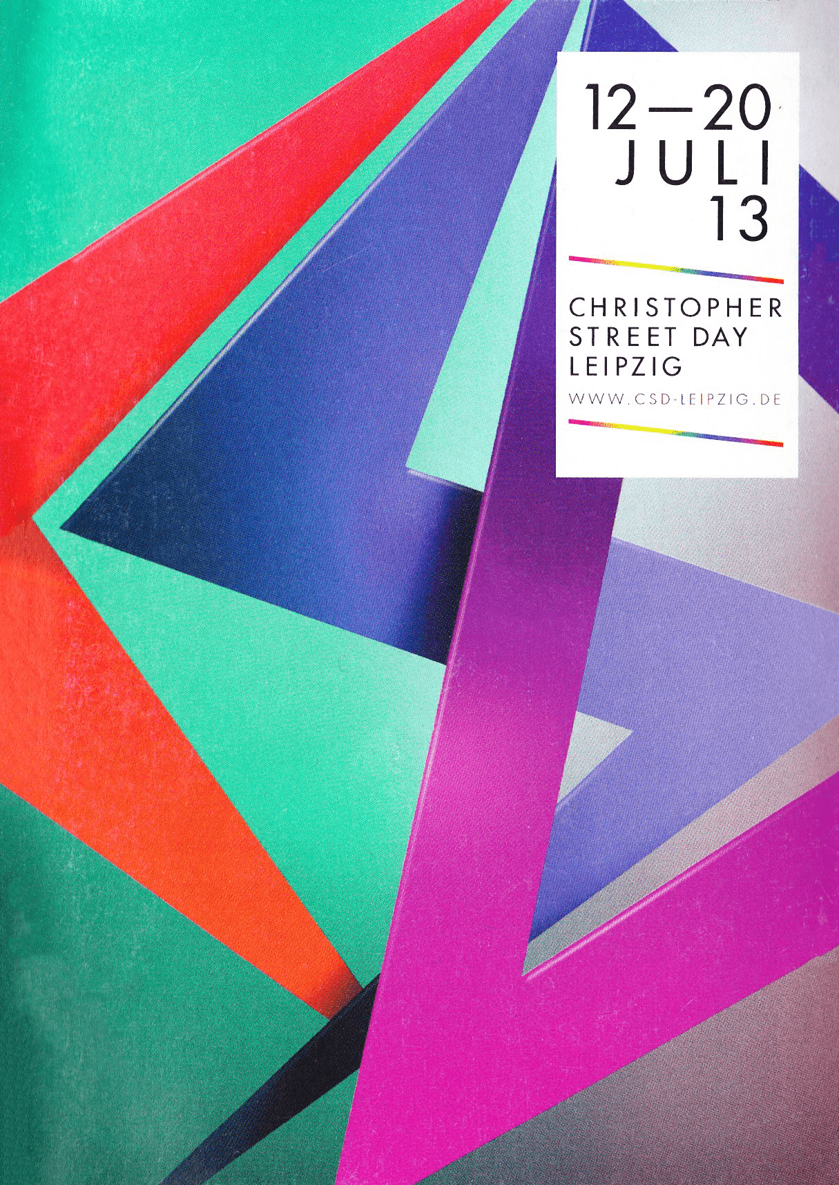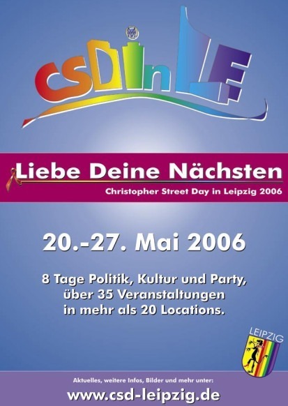 Der Christopher Street Day (CSD) Leipzig verfügt über ein Logo, welches in zwei Varianten existiert; eine Variante mit dem Datum der jeweiligen CSD-Woche und eine Variante ohne Datum. Das Logo darf entsprechend der unten genannten Bedingungen verwendet werden. Weitere Dateiformate und Größen auf Anfrage.